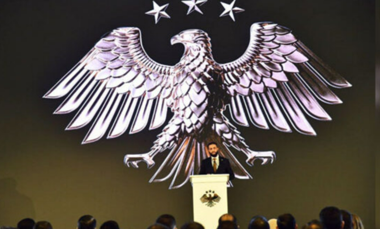 وفي كلمته أمام الحضور الرسمي والجماهيري، قال الرئيس الشرع: “الهوية التي نُعلنها اليوم هي هوية سوريا القوية، الموحدة، التي لا تقبل التجزئة ولا التقسيم، هوية مستلهمة من الطائر الجارح الذي يرمز إلى القوة والعزم والدقة والابتكار”. وأضاف أن هذه الهوية ليست مجرد شعار بصري، بل تعبير عميق عن القيم التي يحملها الشعب السوري في هذه المرحلة التاريخية، بعد سنوات طويلة من الألم والصراع.